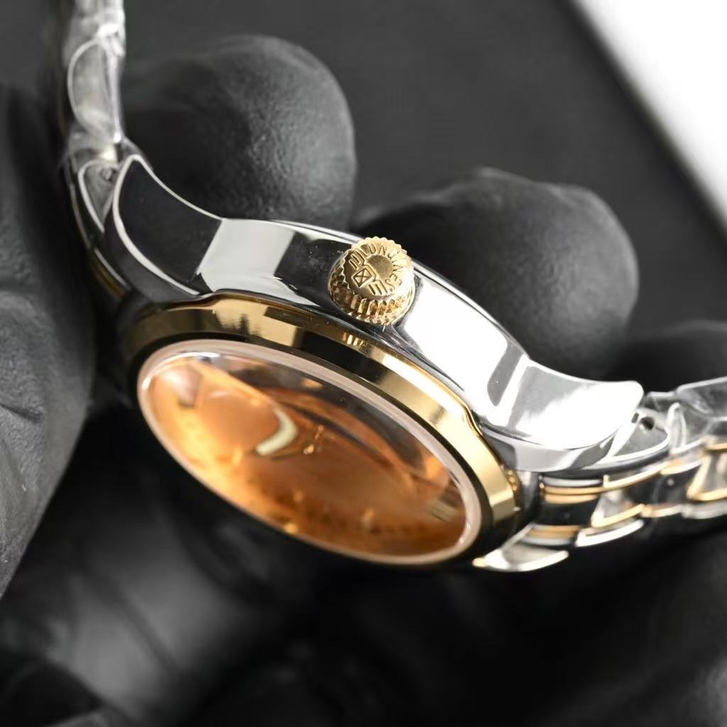 Protected by a sapphire crystal, the dial is scratch-resistant and offers crystal-clear visibility. With water resistance up to 30 meters, this watch is ideal for daily wear and light activities. The two-tone stainless steel bracelet features alternating silver and gold-tone links with a polished finish, offering both comfort and a premium feel. Secured with a secure fold-over clasp, it ensures a snug and elegant fit on the wrist.