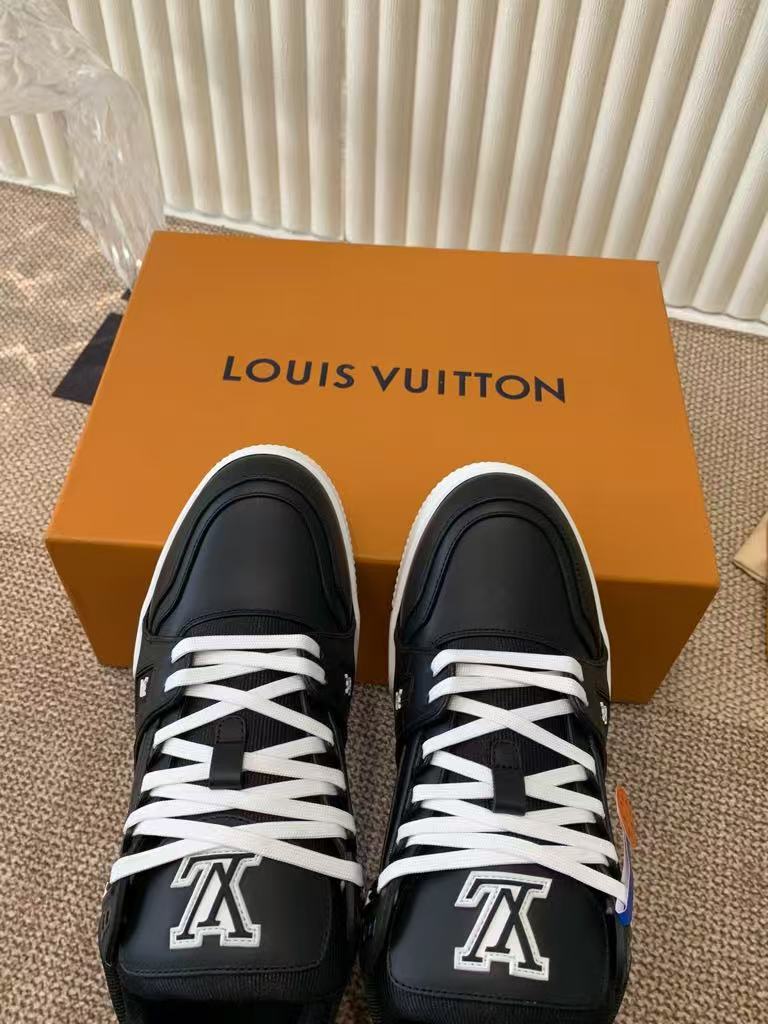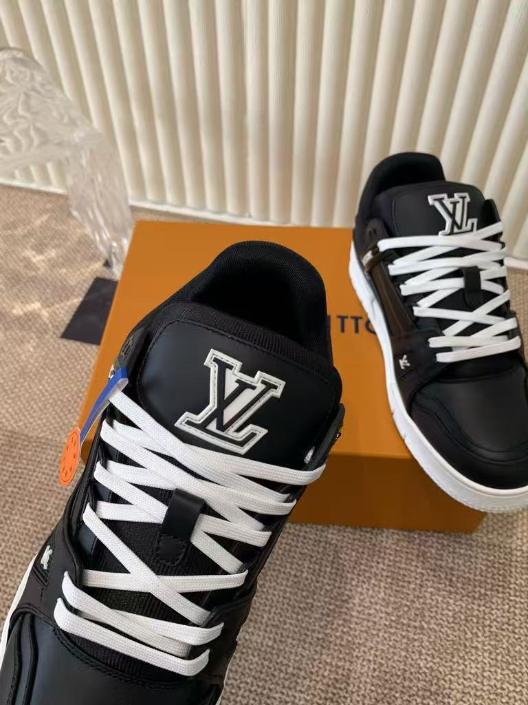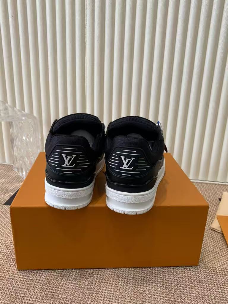 Choose the Louis Vuitton black leather sneakers and let your feet reflect modern elegance — where black meets white, leather meets legacy, and every step feels like a moment of control.