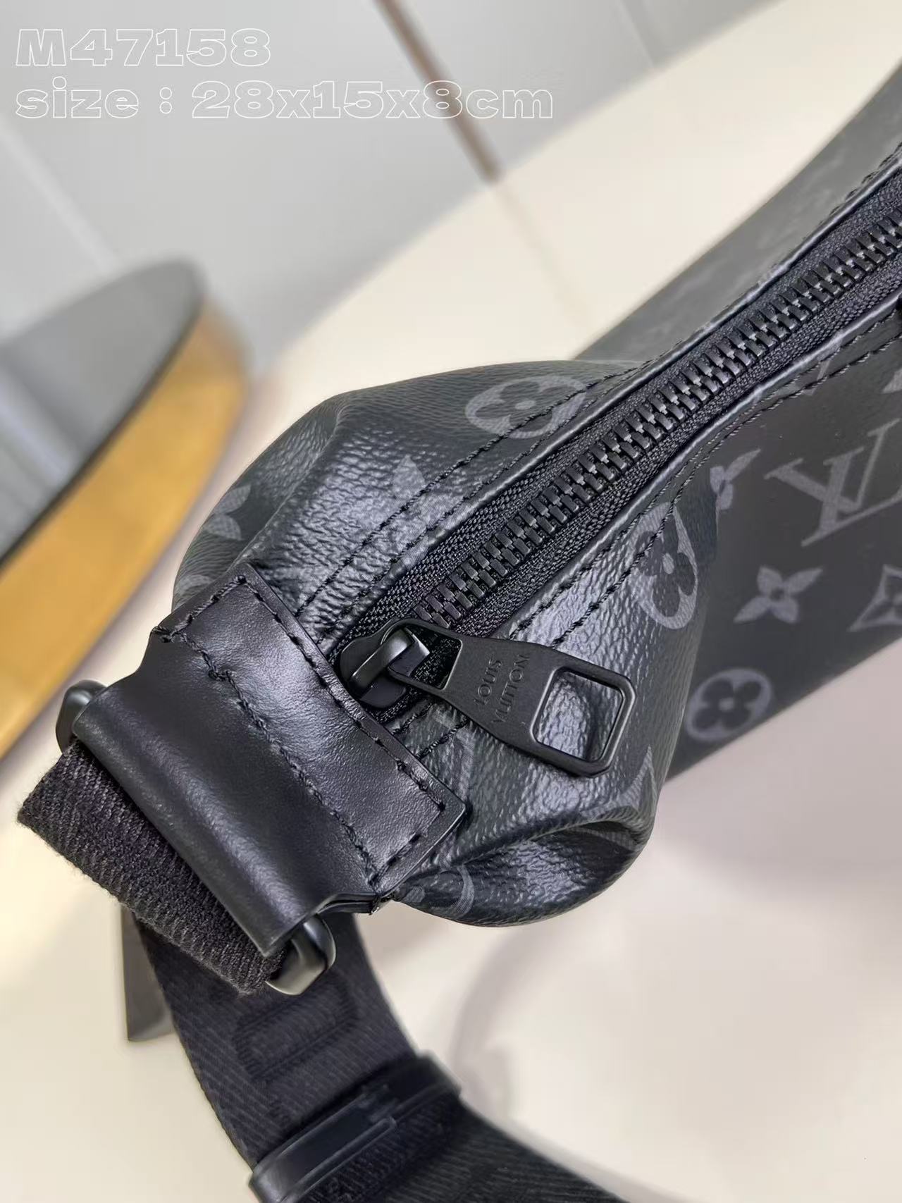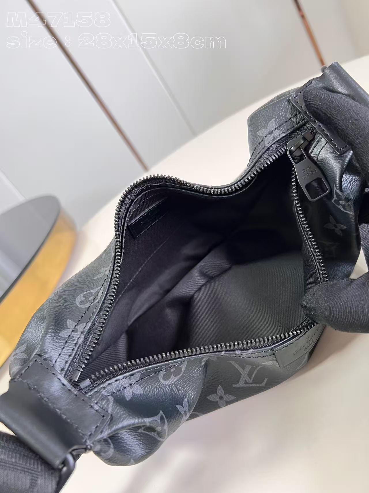 Louis Vuitton-Style New Moon Bag – Black Monogram Leather with Sleek Design & Adjustable Strap (M47158)