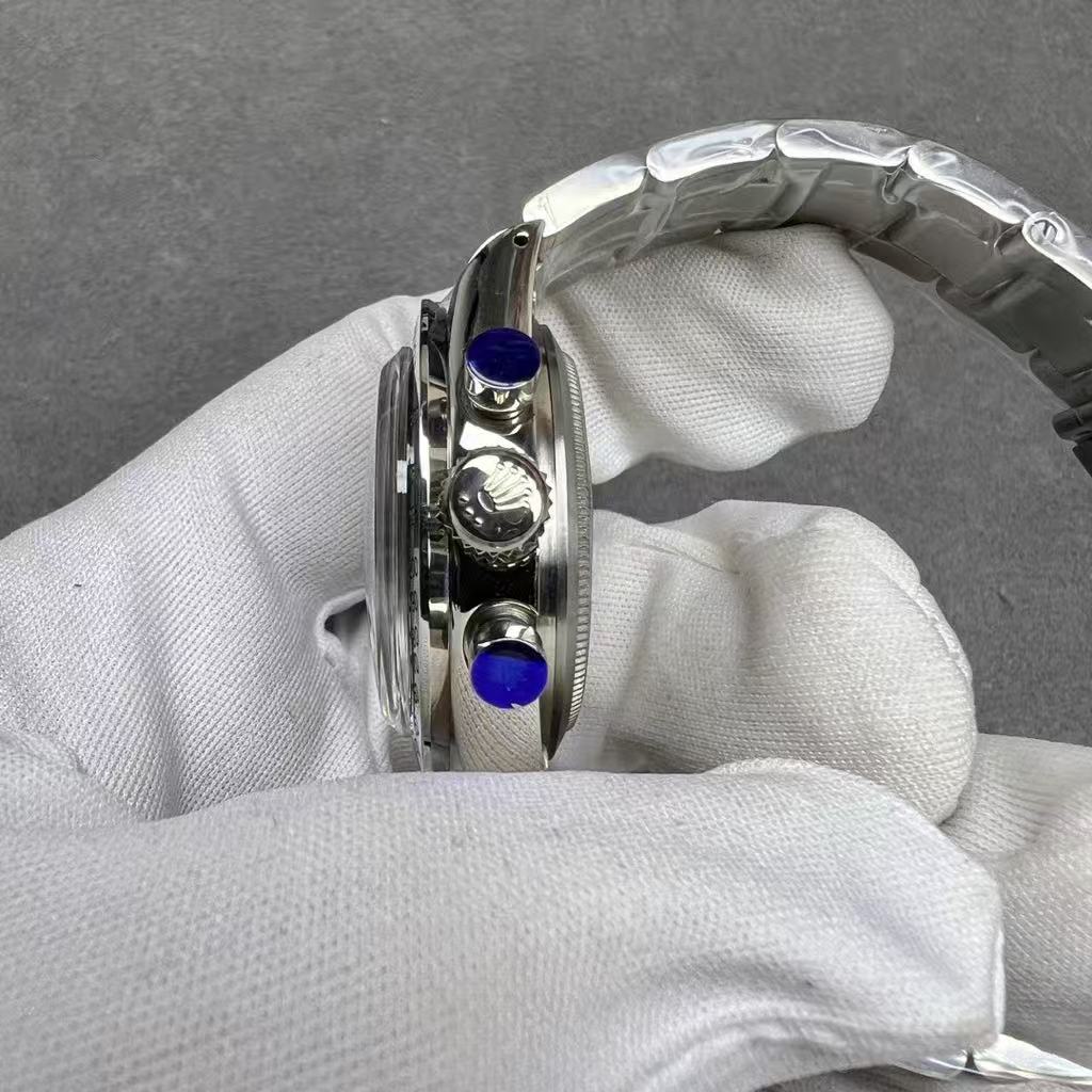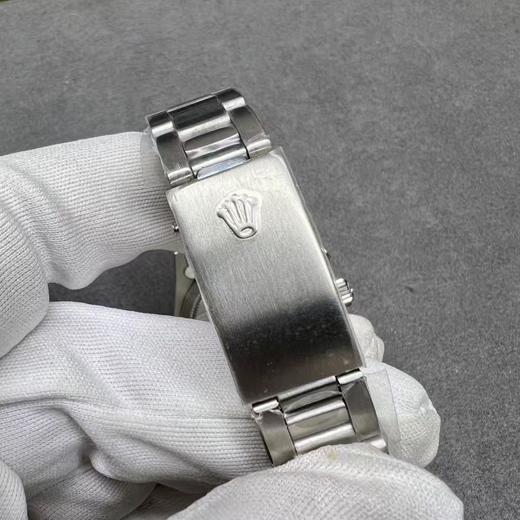 Housed in a polished stainless steel case, it includes an integrated Oyster bracelet that combines durability with refined comfort. The screw-down crown enhances water resistance, ensuring reliable performance in daily wear. Every detail — from the engraved “ROLEX” logo to the “Cosmograph” text — reflects precision engineering and timeless design.