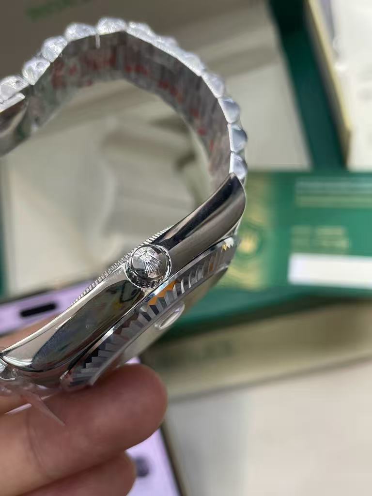 Elevate your style with this exquisite luxury watch inspired by the iconic Rolex Oyster Perpetual Day-Date. Featuring a silver textured dial with a subtle holographic finish, this timepiece catches the light in mesmerizing ways — creating a unique and eye-catching effect that stands out in any setting. The fluted bezel adds classic refinement, enhancing its sophisticated silhouette.