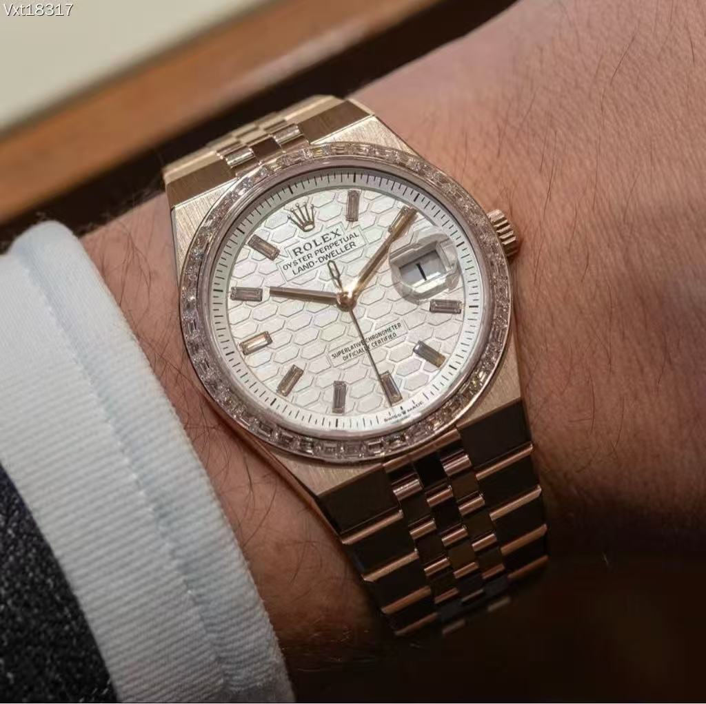 Luxury Oyster Perpetual-Style Land-Dweller Watch – Three Colors Available: Silver, White & Rose Gold with Honeycomb Dial