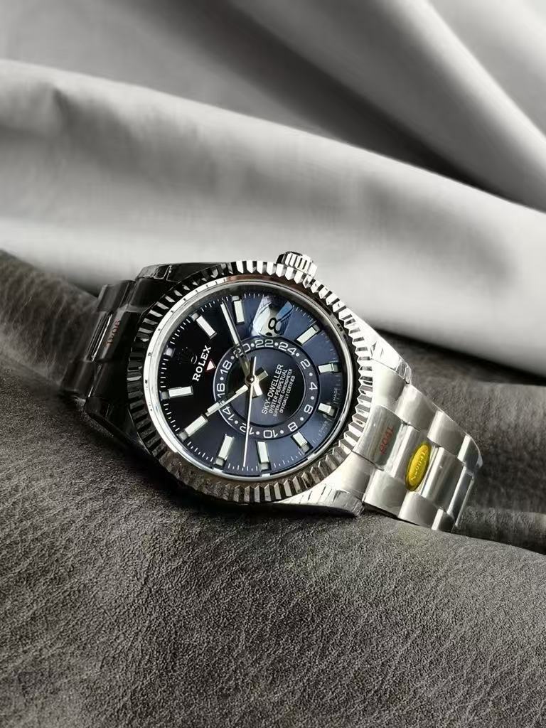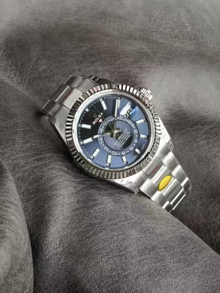 Elevate your journey across time zones with this exceptional luxury watch inspired by the iconic Rolex Sky-Dweller. Designed for the modern global traveler, it features a deep blue dial with a clear 24-hour display and dual time zone functionality — allowing you to track both home and local time with ease. The fluted bezel can be rotated to set the second time zone, making it ideal for business trips, international flights, or jet-setting lifestyles.