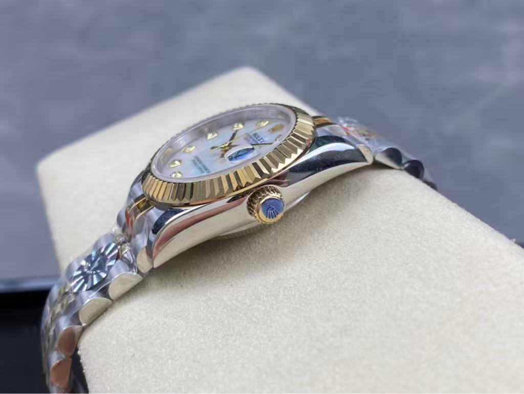 Luxury Two-Tone Datejust-Style Watch – Mother of Pearl Dial with Diamond Hour Markers, Fluted Bezel