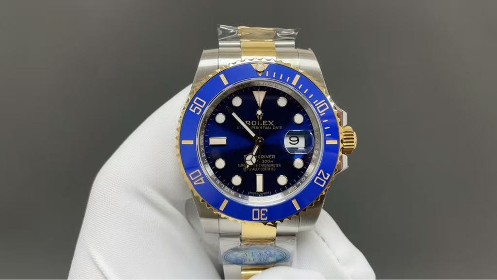 Luxury Two-Tone Submariner-Style Watch – Blue Dial, Ceramik Bezel, Oyster Bracelet, Water Resistant