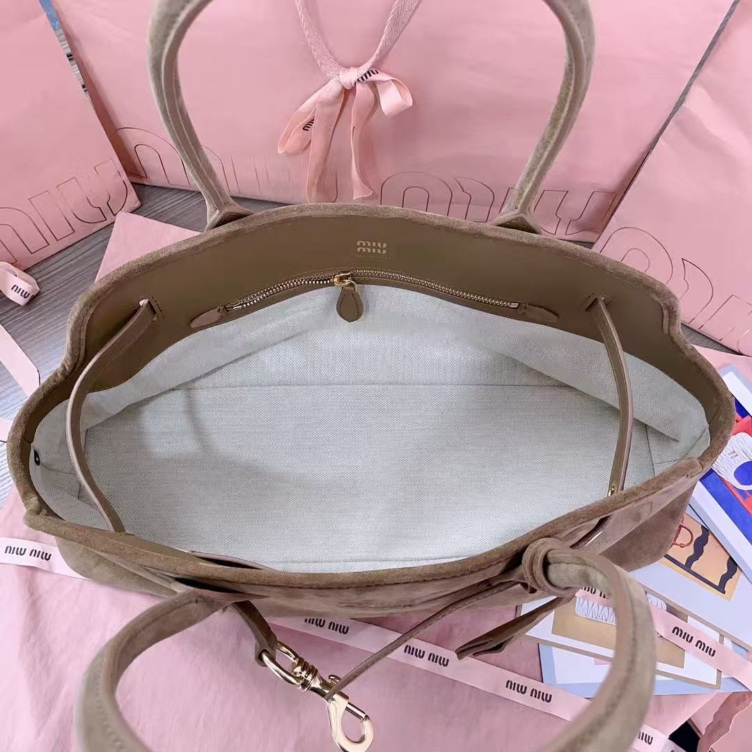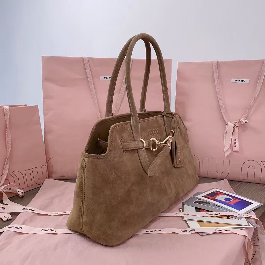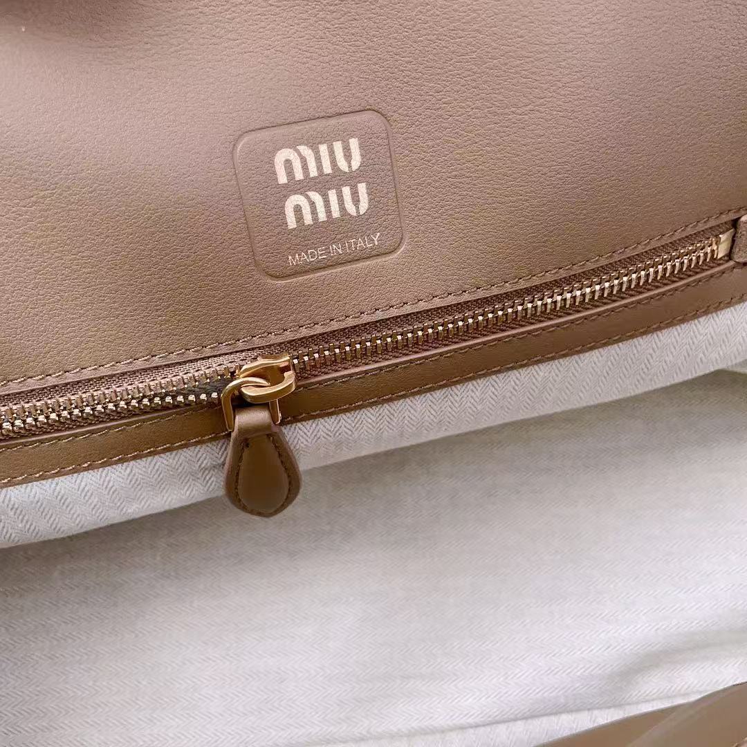 The embossed or metallic “miu miu” logo on the front is more than just branding — it’s a playful nod to fashion heritage, adding a touch of whimsy and identity to every look. With its rounded silhouette and soft drape, the bag offers both comfort and style — perfect for day-to-night transitions.