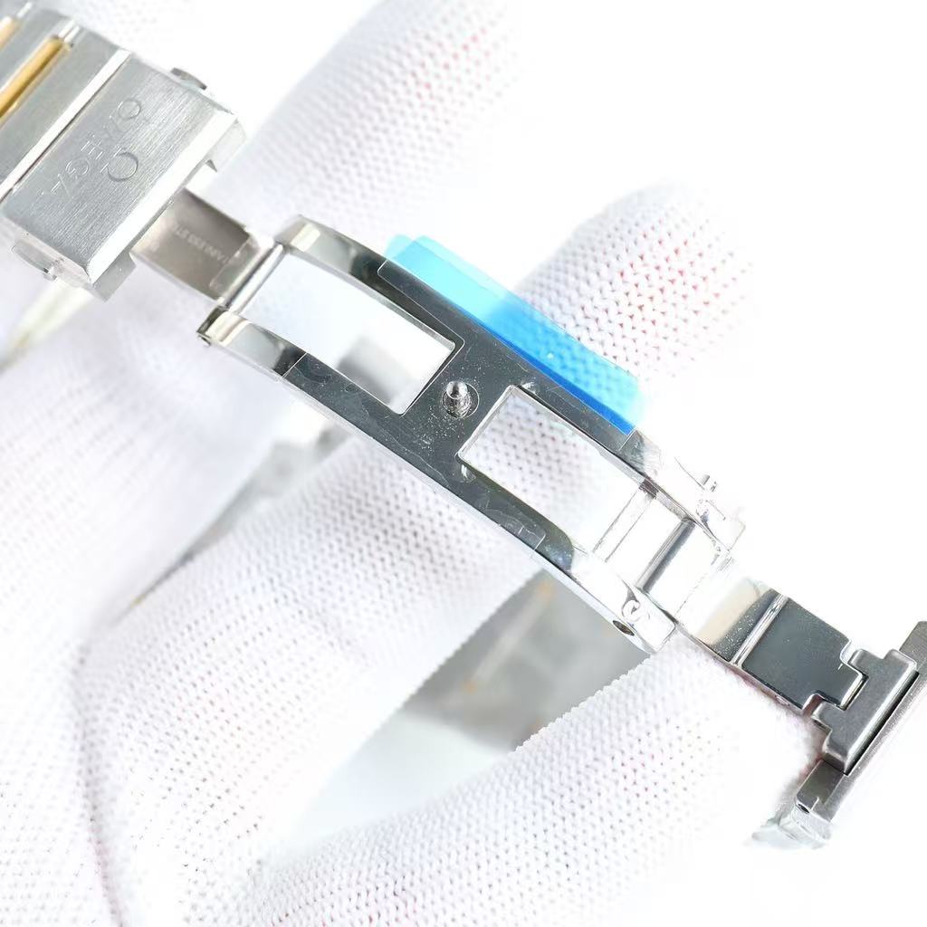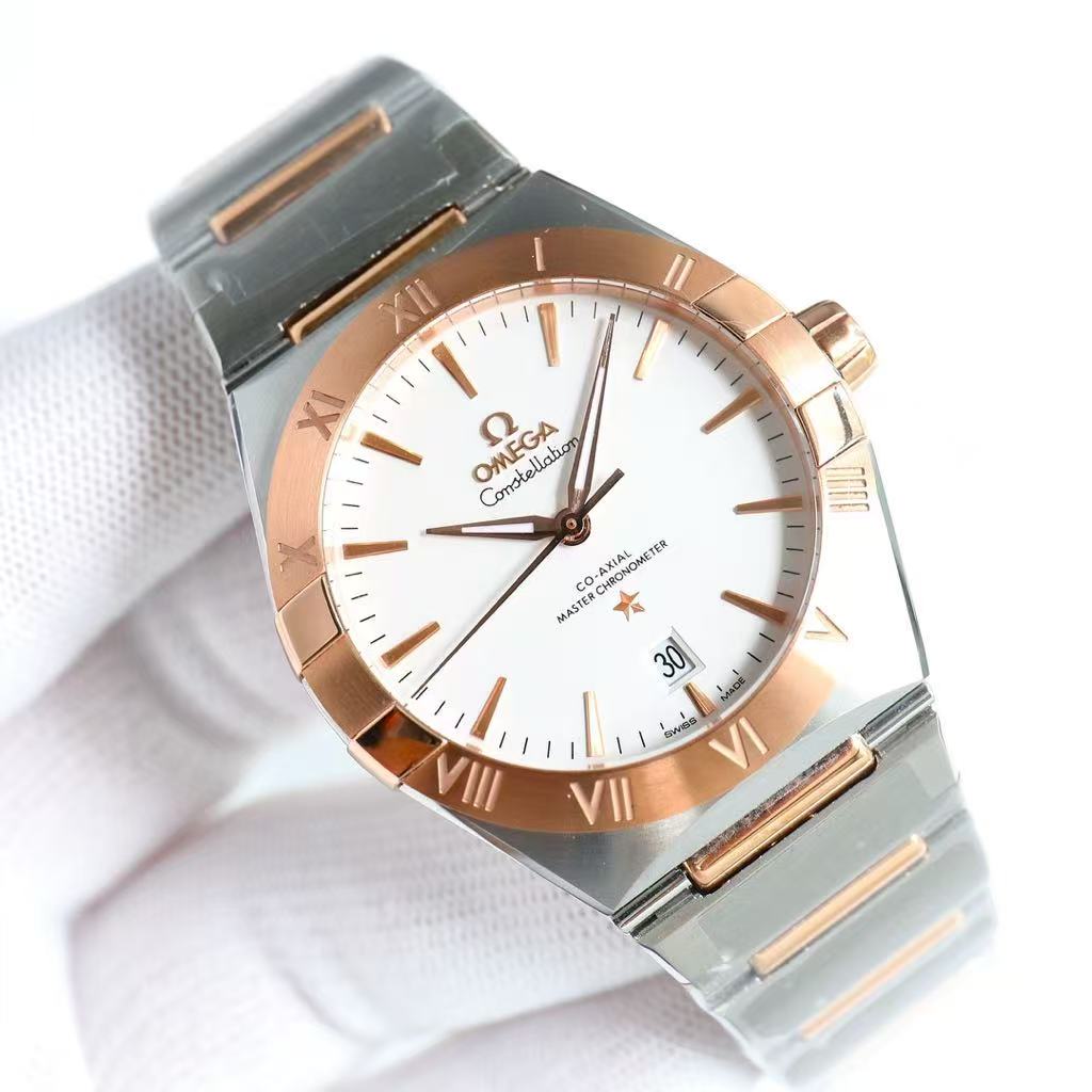Iconic Design Details: The engraved Roman numerals on the bezel and the signature star motif below the date window highlight Omega’s legacy of innovation and luxury craftsmanship.