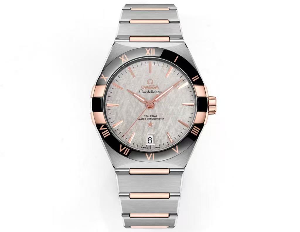 Omega Constellation – Men’s Silver Sunburst Dial with Rose Gold Accents and Two-Tone Bracelet, Co-Axial Master Chronometer