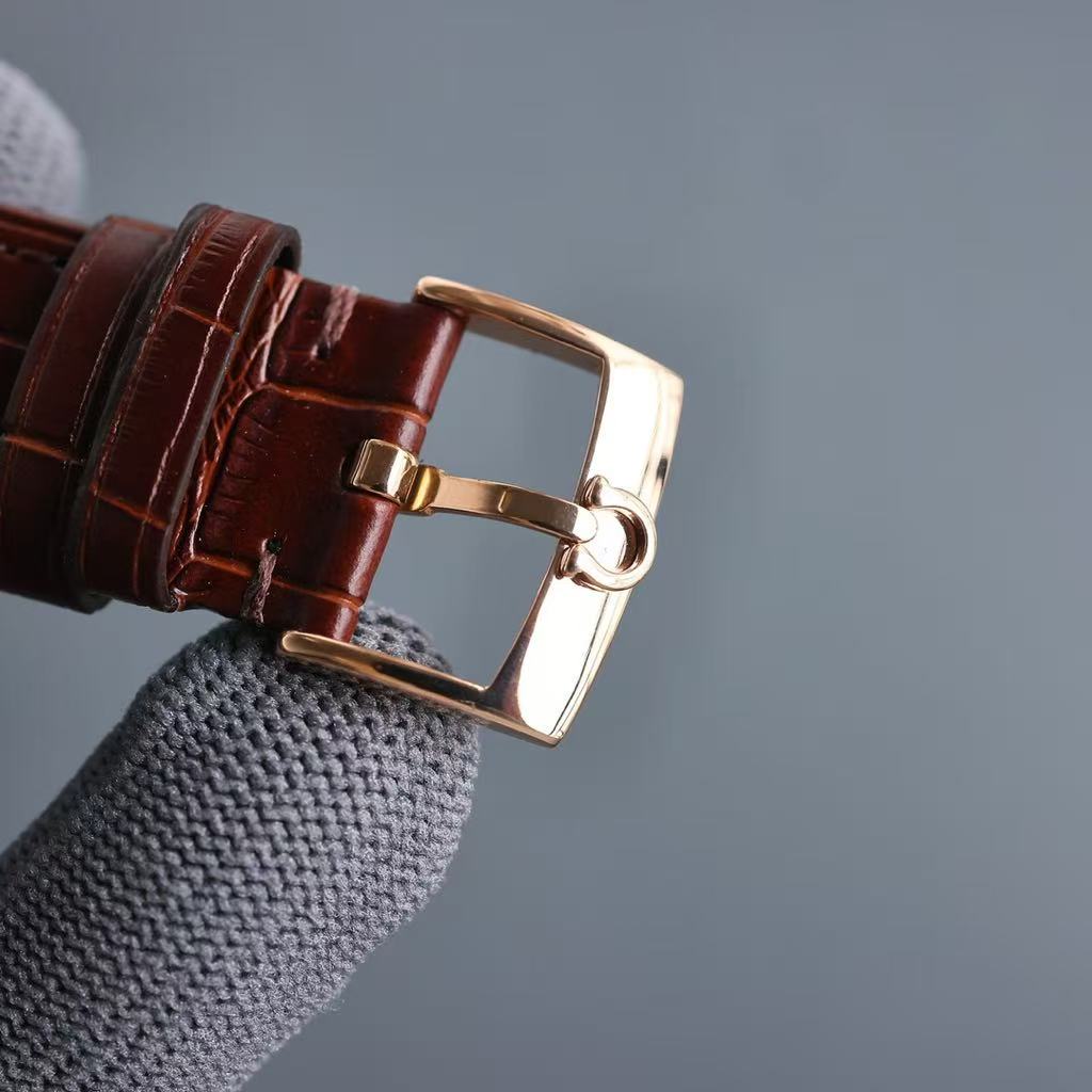 Black Alligator Leather Strap: Paired with a premium black alligator leather strap featuring precise stitching and a textured crocodile pattern, it offers comfort, elegance, and a secure fit—ideal for formal events or daily wear.