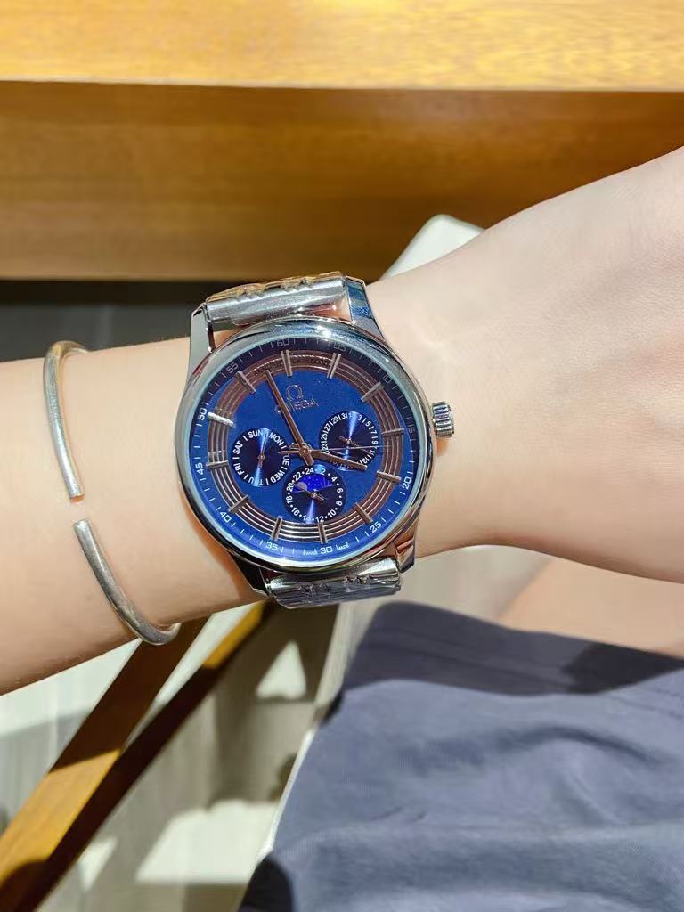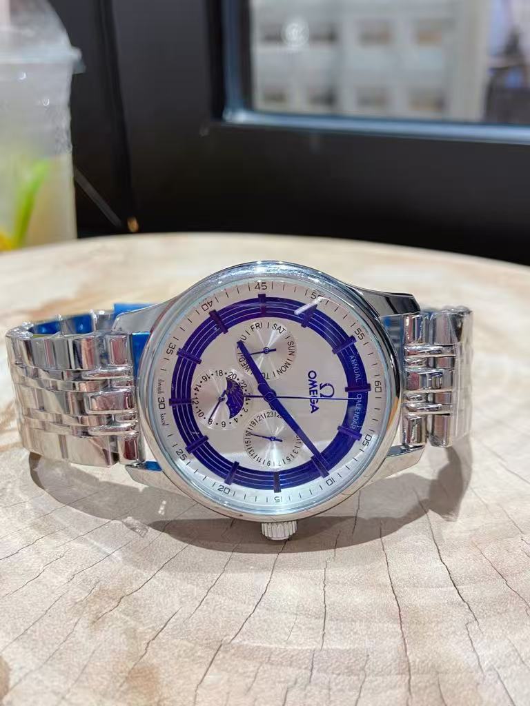 Elevate your style with the Omega De Ville Trésor Chronograph, a sophisticated timepiece that blends classic elegance with modern functionality. Designed for the discerning gentleman, this watch features a sleek stainless steel case and bracelet, paired with a refined chronograph movement and an array of four elegant dial colors—blue, silver, grey, and white—to suit every taste and occasion.