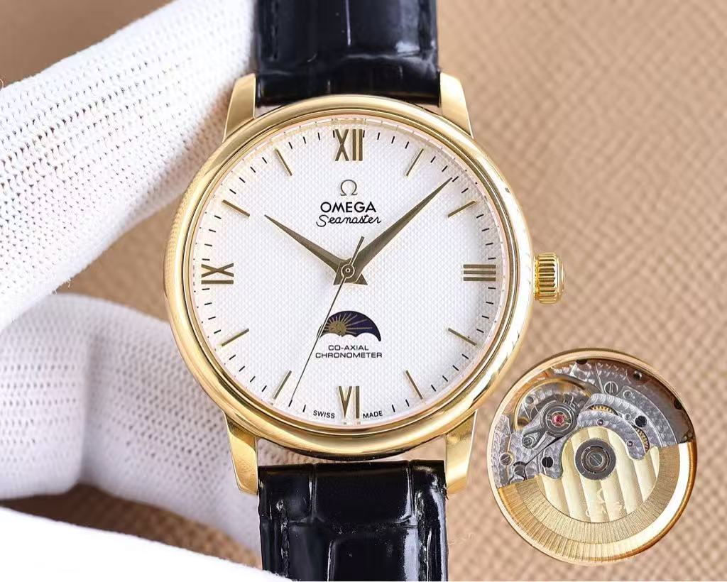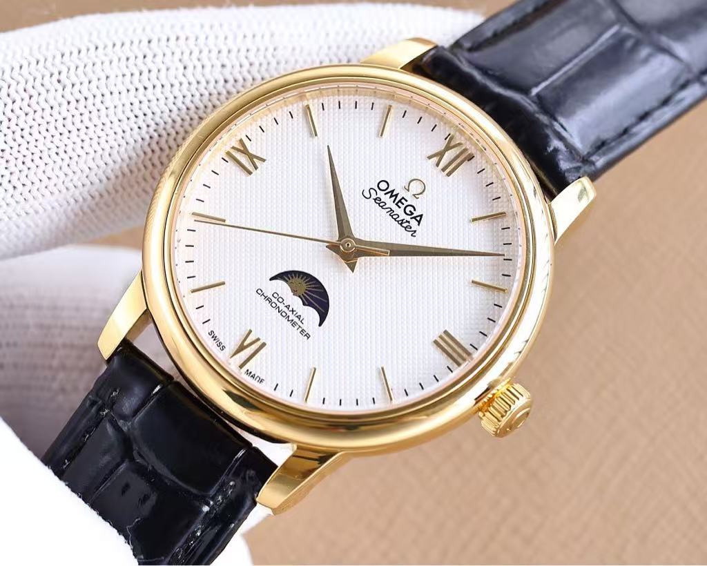 Elevate your elegance with the Omega Seamaster, a timeless masterpiece that blends classic design with sophisticated horological artistry. This refined timepiece features a warm champagne dial, gold-tone case, and an elegant moon phase complication—perfect for those who appreciate both tradition and precision in fine watchmaking.
