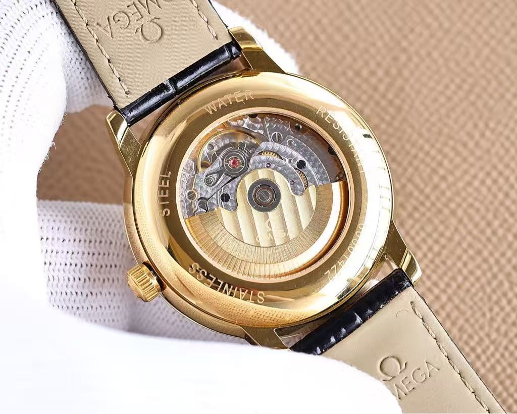 Visible Movement (Inset Image): The inset image reveals the intricate inner workings of the movement, highlighting Omega’s mastery in mechanical engineering and craftsmanship.