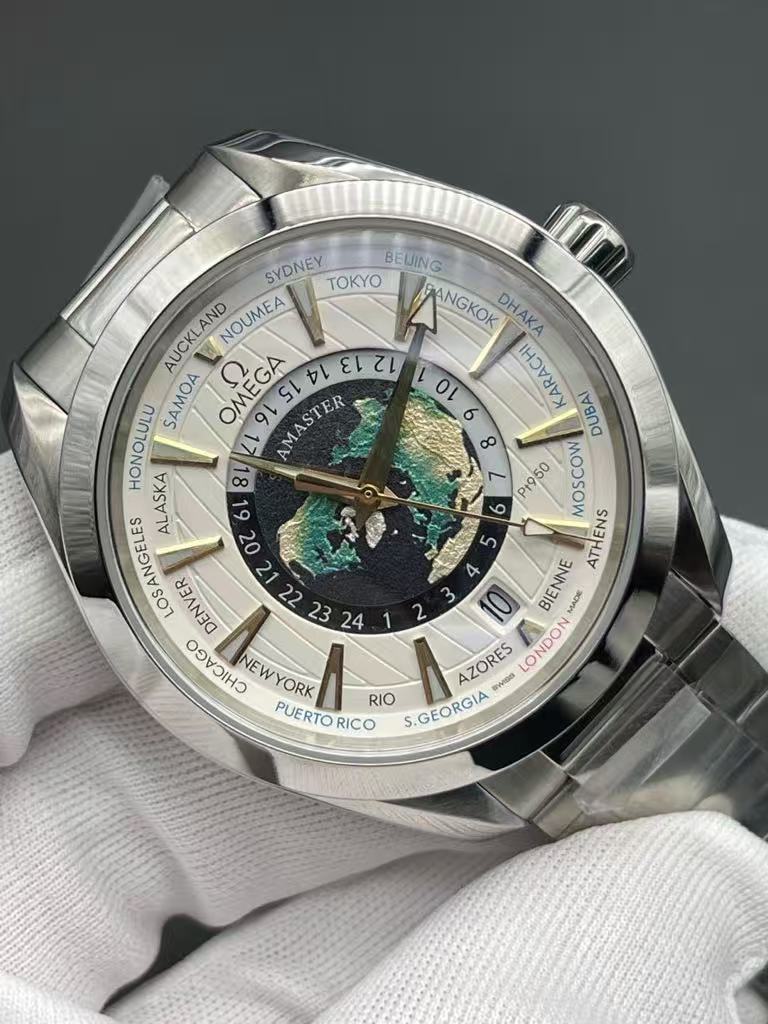 Global Design Inspiration: With its planetary theme and worldwide city markings, this Seamaster embodies Omega’s spirit of exploration, innovation, and connection to the world.