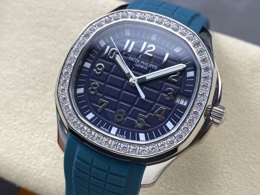 Patek Philippe Aquanaut – Women’s Navy Blue Dial with Diamond Bezel and Rubber Strap, Automatic Movement