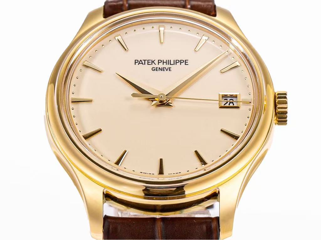 Patek Philippe Calatrava – Men’s Yellow Gold Watch with Cream Dial, Date Display, and Brown Alligator Strap