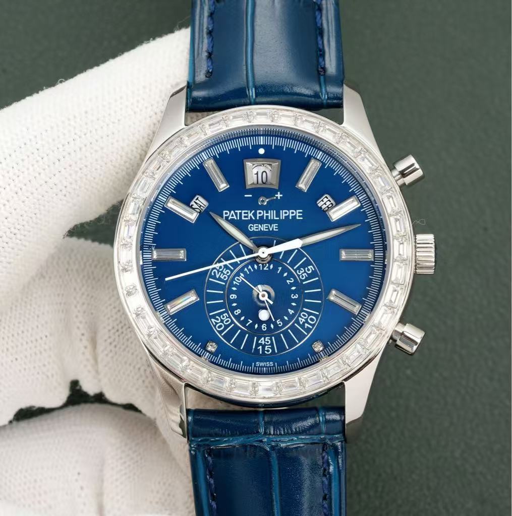 Patek Philippe Complications – Men’s Blue Dial with White Gold Case, Diamond Bezel, and Blue Alligator Strap