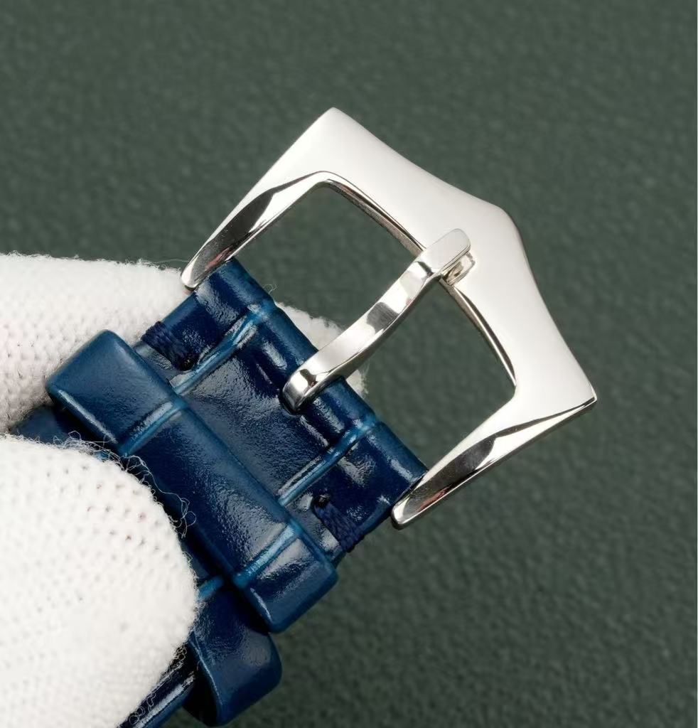 Paired with a premium blue alligator leather strap featuring fine stitching and a secure folding clasp, it delivers exceptional comfort, elegance, and a seamless fit on the wrist—perfect for formal occasions or sophisticated everyday wear.