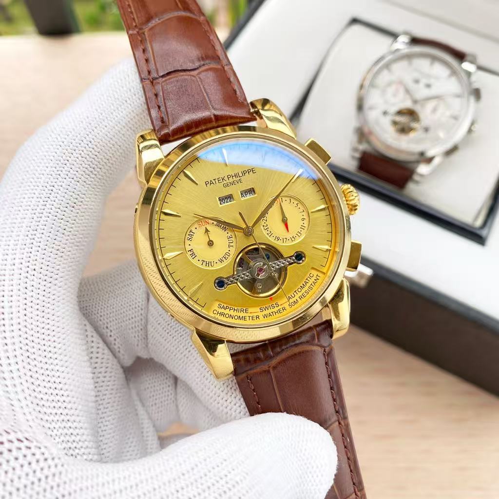 Paired with a premium brown alligator leather strap featuring fine stitching and a secure folding clasp, this watch delivers exceptional comfort, durability, and timeless style—perfect for formal events or everyday luxury wear.