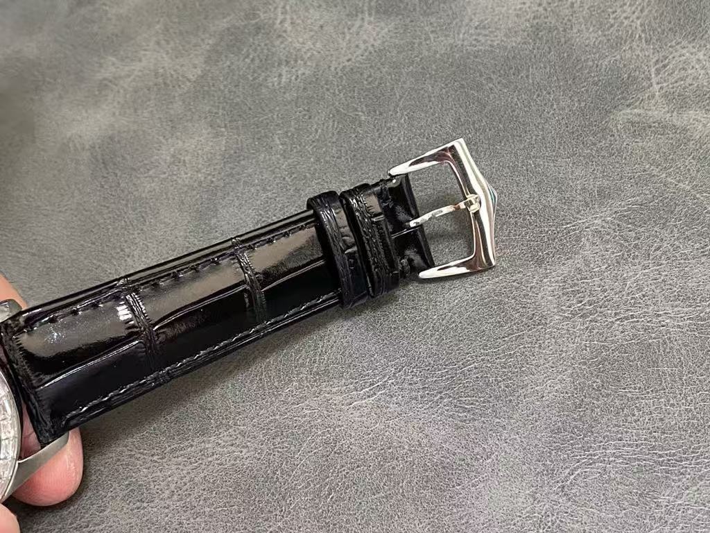 Paired with a premium black alligator leather strap featuring fine stitching and a secure folding clasp, it delivers exceptional comfort, sophistication, and a seamless fit on the wrist—perfect for formal events or luxurious everyday wear.