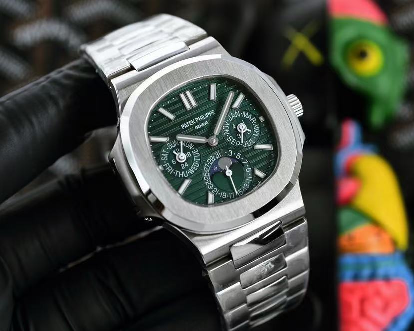 “Patek Philippe Nautilus – Men’s Green Dial with Perpetual Calendar, Stainless Steel Case and Integrated Bracelet “