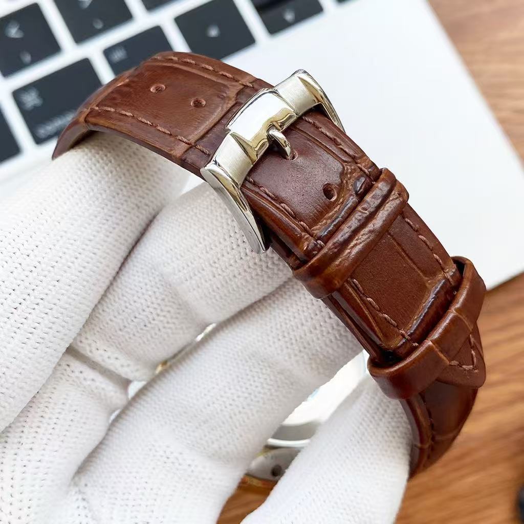 Housed in a polished stainless steel case with a fluted crown, this watch exudes timeless sophistication and refined engineering. Paired with a premium brown alligator leather strap featuring fine stitching and a secure folding clasp, it offers exceptional comfort, durability, and a seamless fit on the wrist—perfect for both formal occasions and everyday luxury wear.