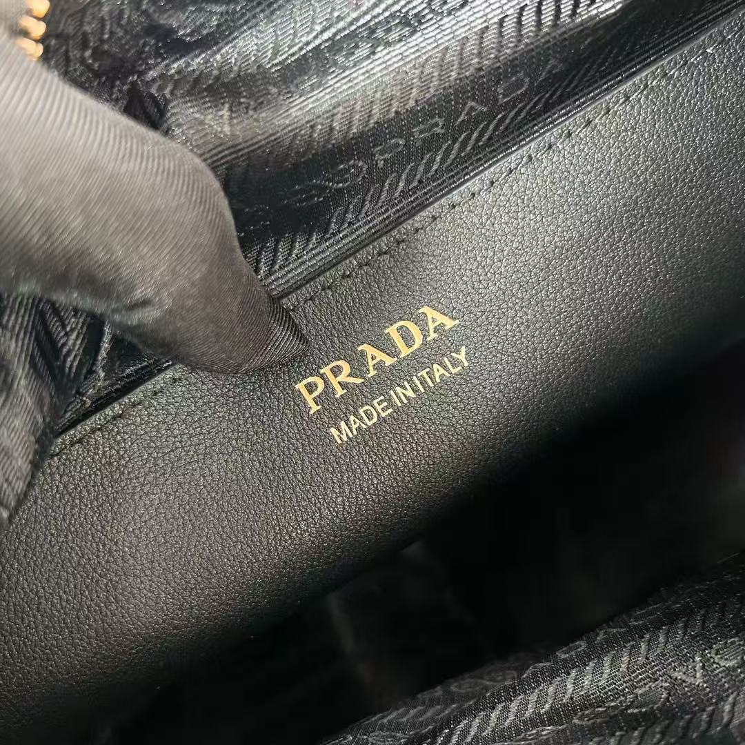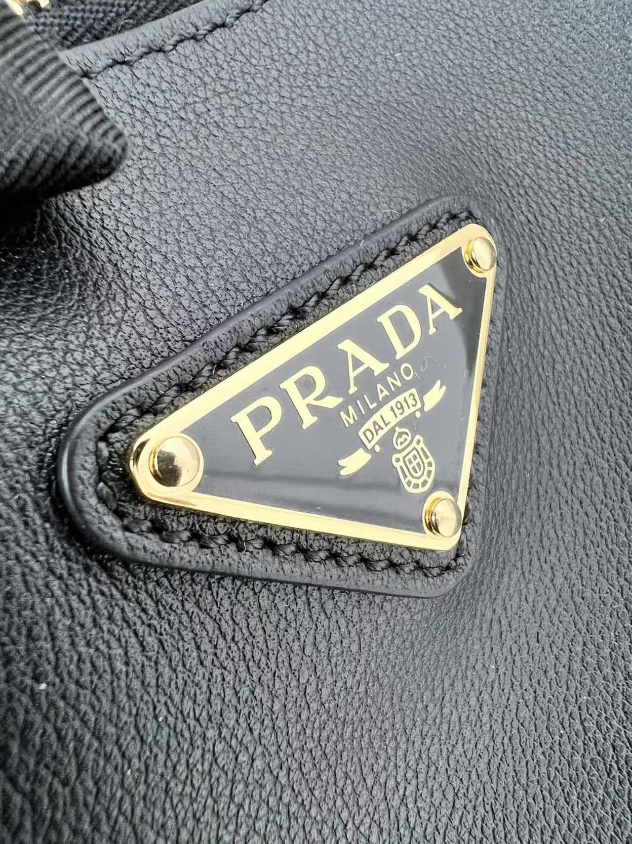 ✔️ Large embossed triangular logo – “PRADA MILANO” subtly debossed into the surface for understated branding