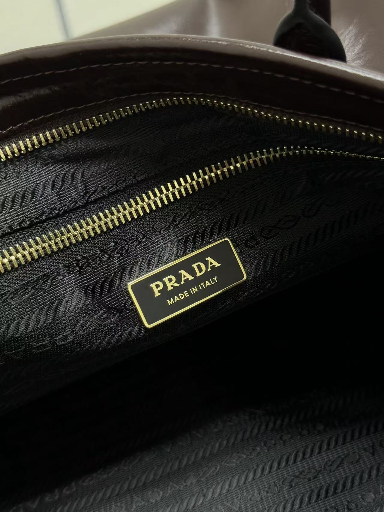 Iconic Triangular Logo Plaque – Signature “PRADA MILANO” metal badge adds subtle designer flair and instant recognition.
