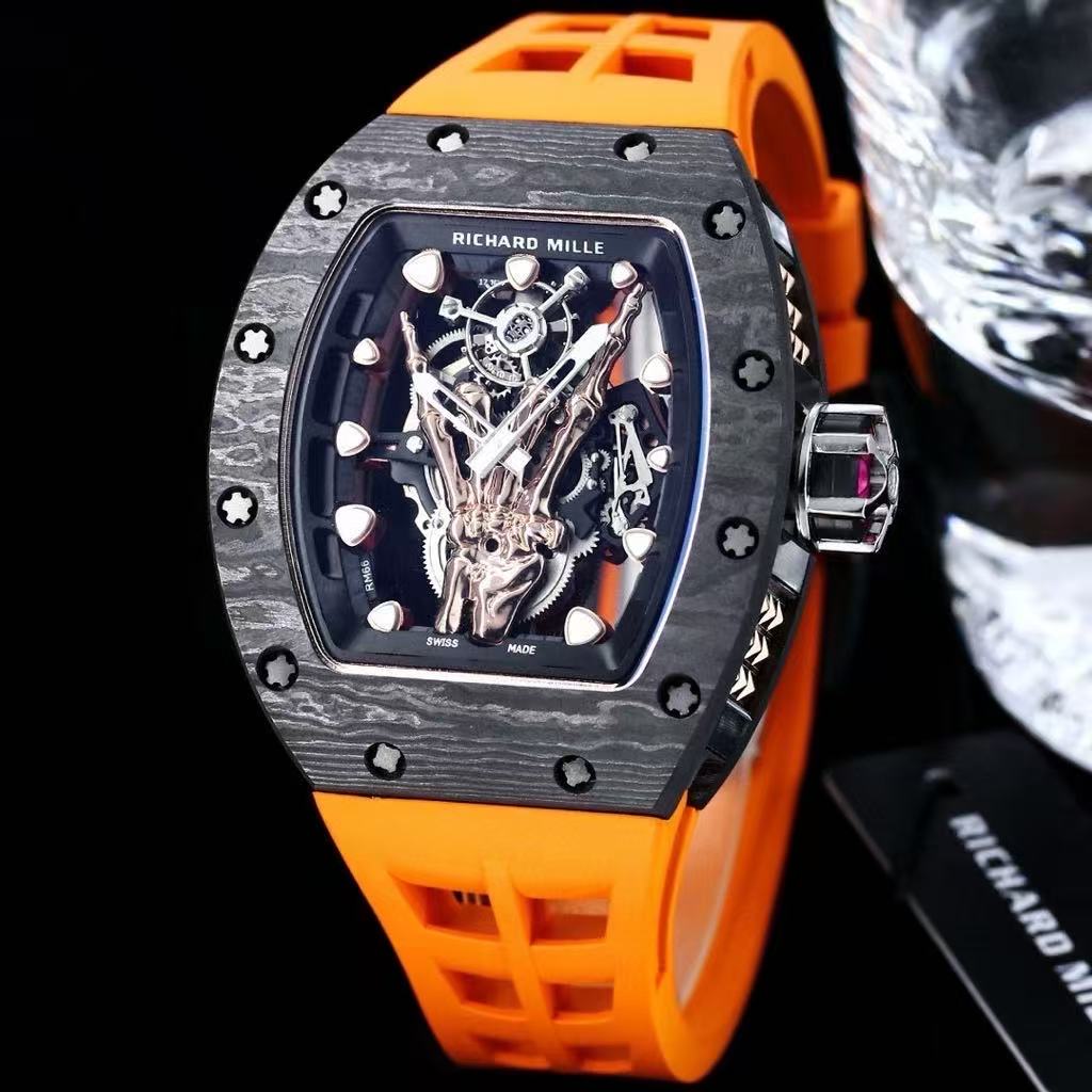 Make a bold statement of edgy elegance with this Richard Mille-inspired luxury skeleton watch, designed to capture the essence of avant-garde horology and dark artistry. Featuring a carbon fiber case with a textured finish, this timepiece blends strength, lightness, and futuristic style — perfect for those who dare to stand out.