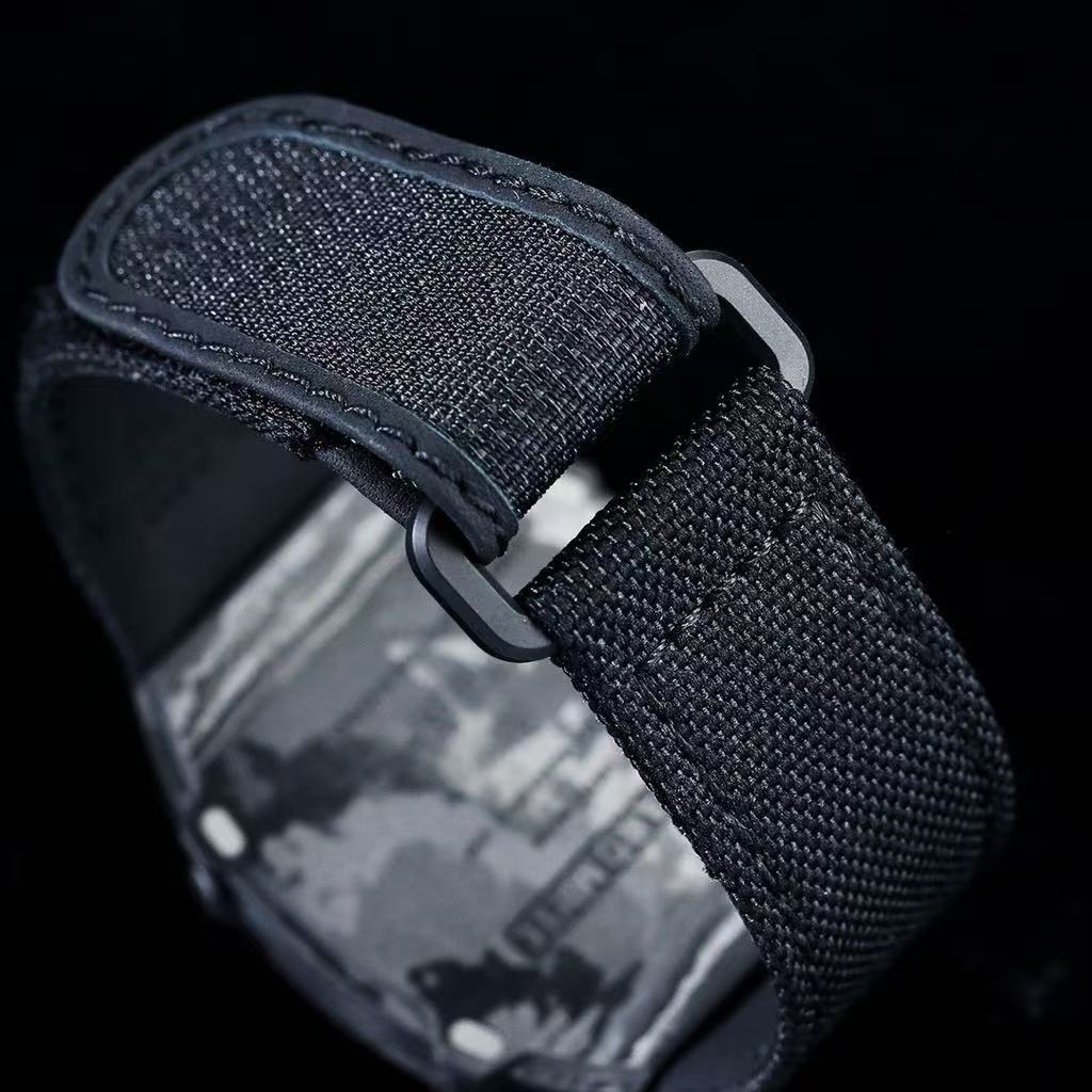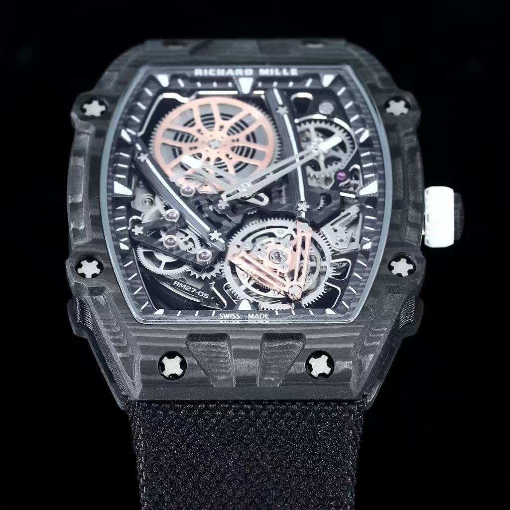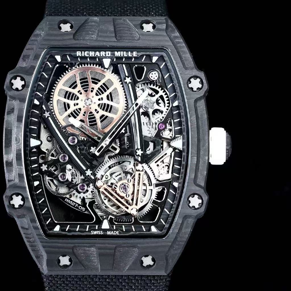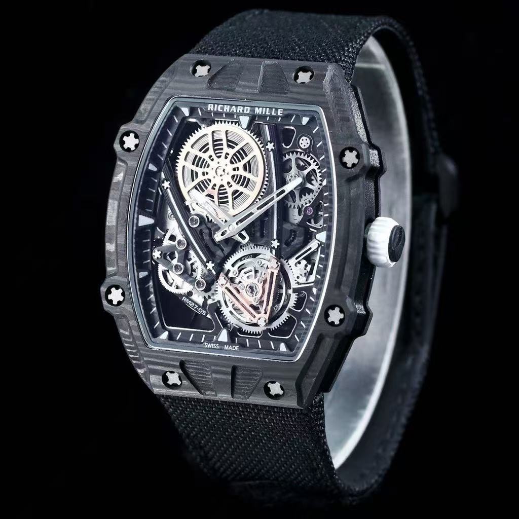 Richard Mille-Style Luxury Skeleton Watch – Carbon Fiber Case, Visible Tourbillon Movement, Black Fabric Strap