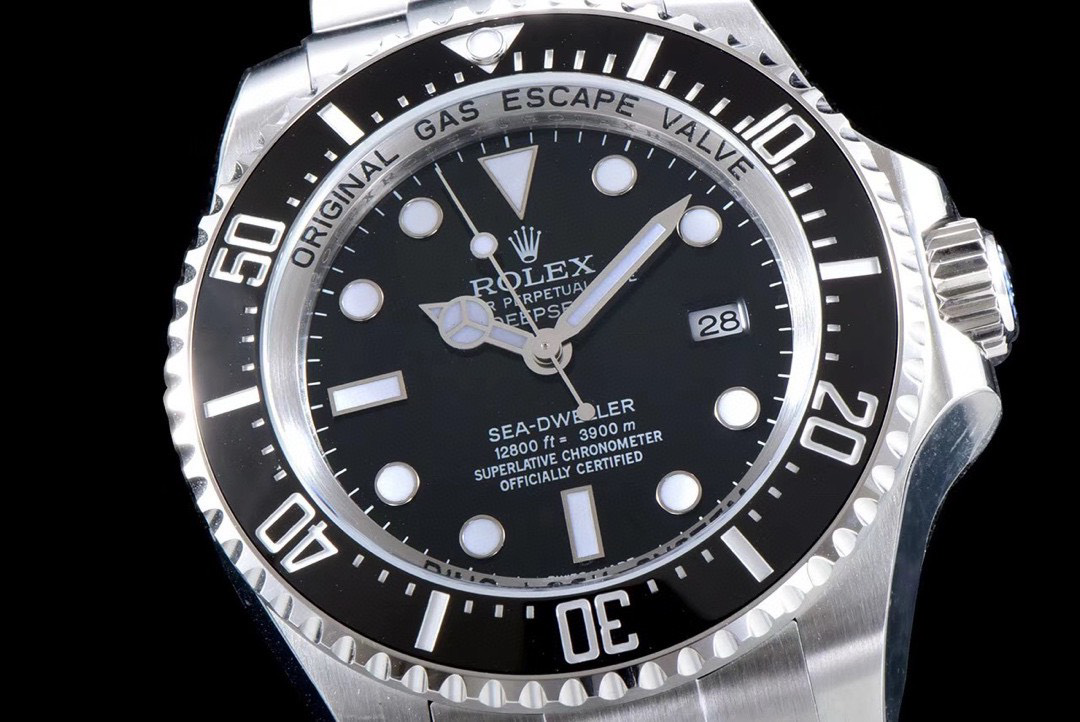 Rolex Sea-Dweller Replica Watch – Black Dial, 12800ft Depth Rating, Stainless Steel Case with Gas Escape Valve