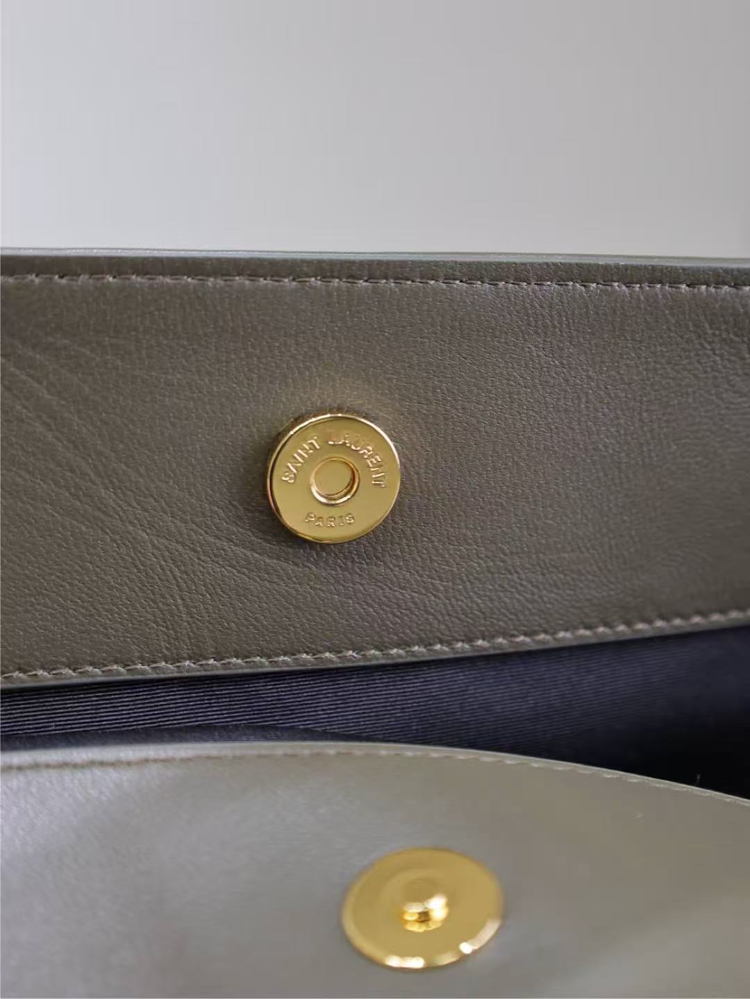 ✔️ Gold-tone YSL logo plaque – Iconic “YSL” monogram in polished metal for instant recognition