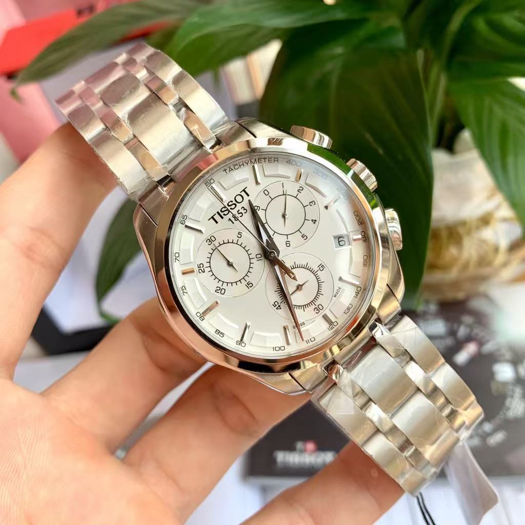 Tissot Chronograph Watch – Two-Tone Stainless Steel Bracelet, Black & White Dial Options, Tachymeter Bezel
