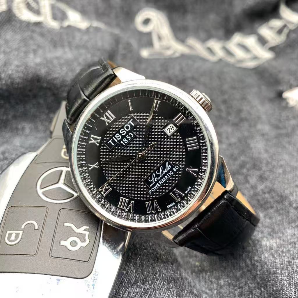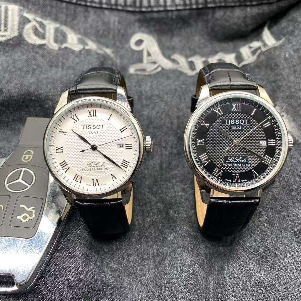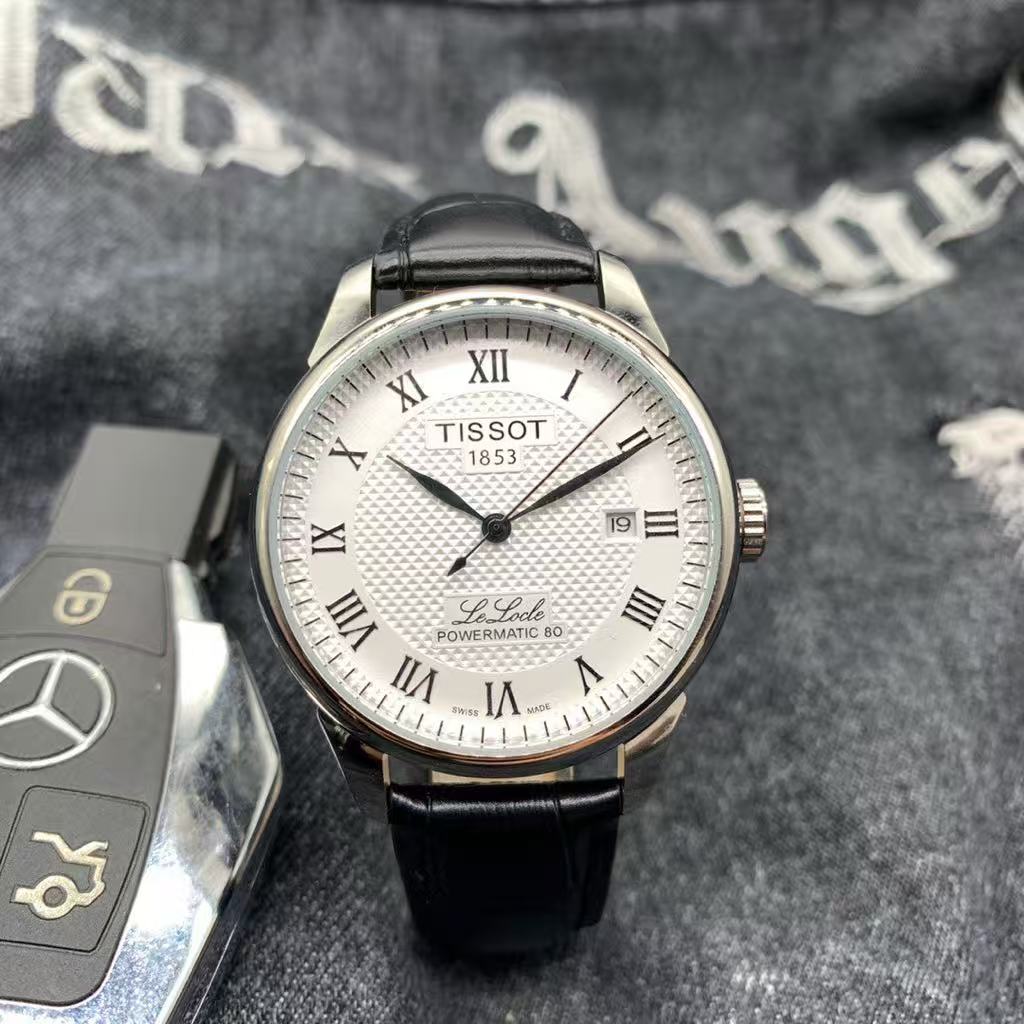 Tissot Le Locle Automatic Watch – Stainless Steel Case, White Dial with Roman Numerals, Black Leather Strap