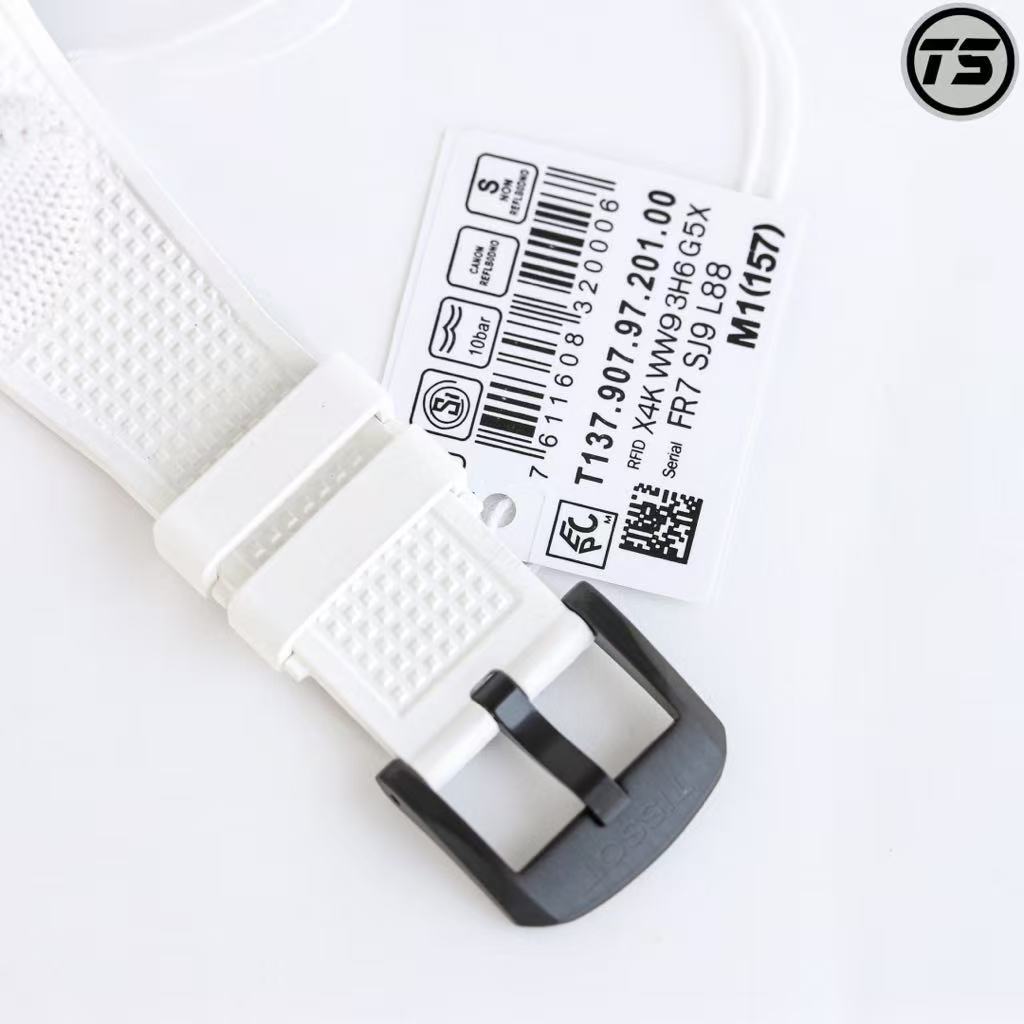 Protected by a scratch-resistant sapphire crystal glass, the dial maintains clarity over time. With water resistance up to 100 meters, it’s suitable for swimming, snorkeling, and everyday wear. The white rubber strap is soft, breathable, and designed for comfort during extended use.