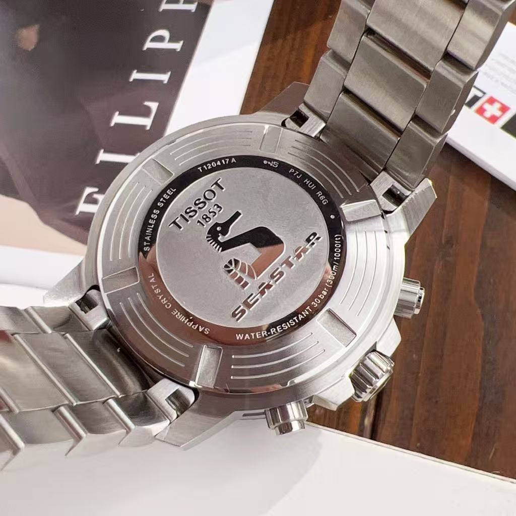 Tissot Seastar Chronograph Diver Watch – Green Dial, Stainless Steel Bracelet, 300m Water Resistance