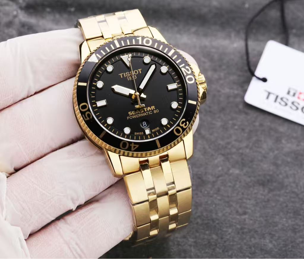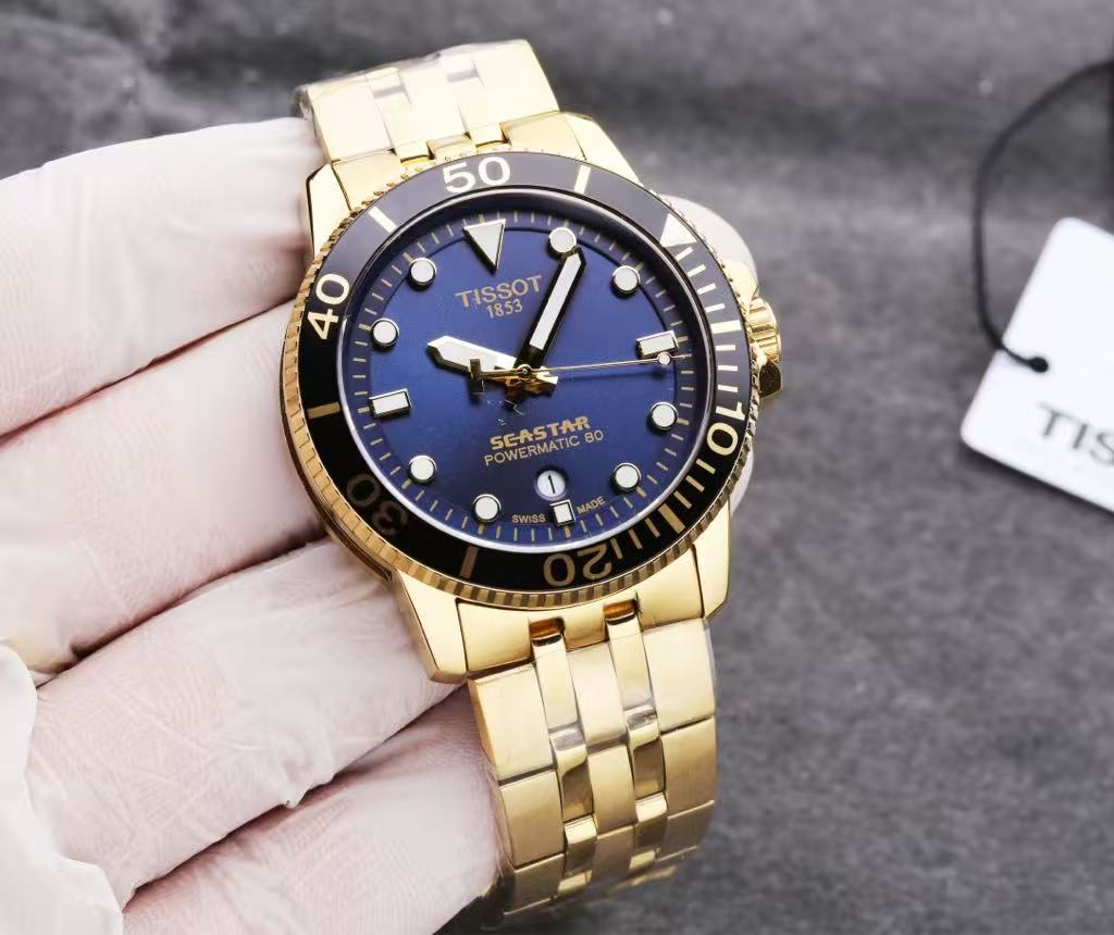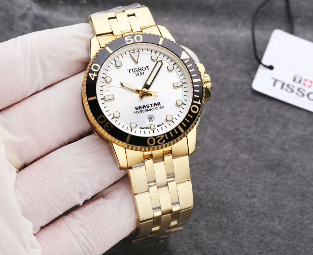 The date window at 6 o’clock adds practicality without disrupting the clean, balanced layout. Whether worn on a dive trip, at a formal event, or as a statement piece, this Tissot Seastar watch combines luxury, performance, and Swiss engineering excellence.