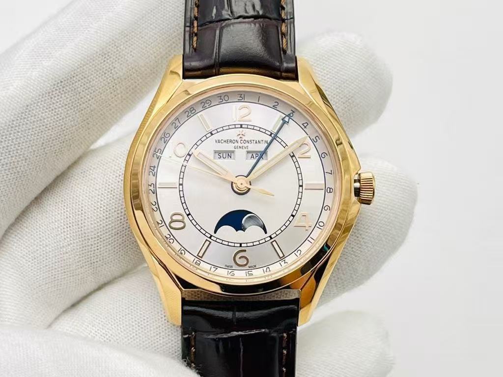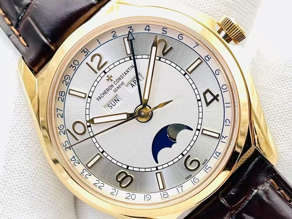 Vacheron Constantin Patrimony – Men’s White Dial with Moon Phase, Day/Month Display, and 18K Yellow Gold Case