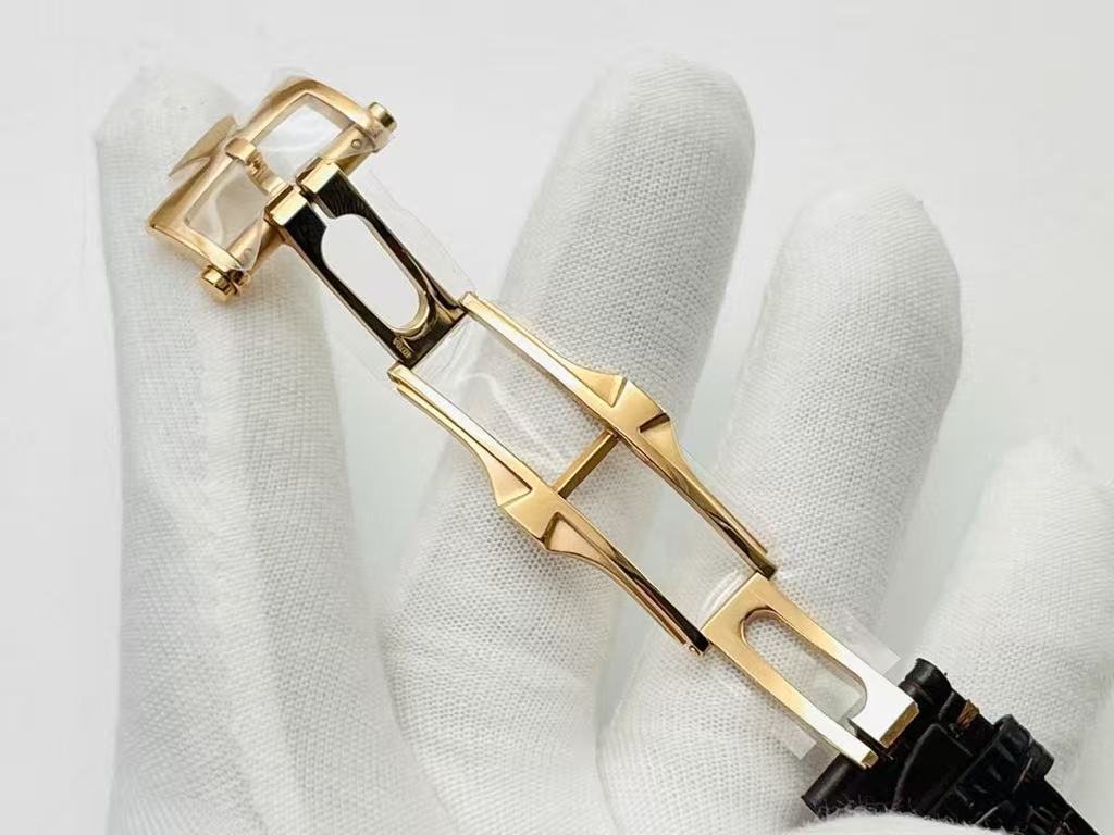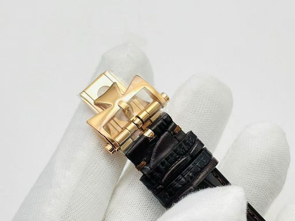 Housed in a luxurious 18K yellow gold case with a polished finish, this timepiece radiates warmth, richness, and enduring sophistication. Paired with a premium dark brown alligator leather strap featuring fine stitching and a secure folding clasp, it delivers both comfort and refined style.